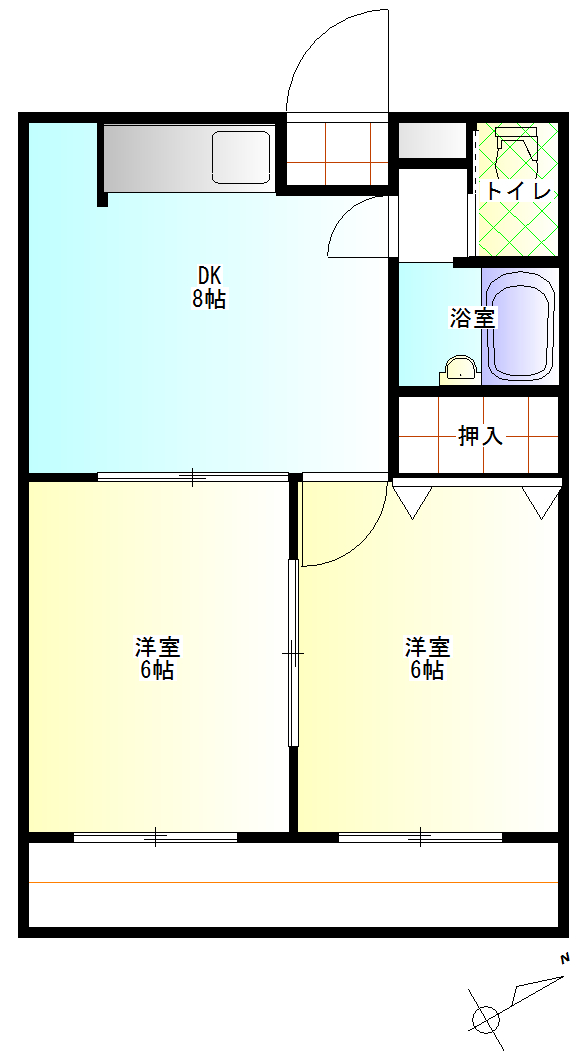 | 賃料 | 201(2DK)44,000円 202(2DK)43,000円 203(2DK)43,000円 205(2DK)43,000円 206(2DK)44,000円 101(2DK)44,000円 102(2DK)41,000円 103(2DK)41,000円 105(2DK)41,000円 106(2DK)42,000円 |