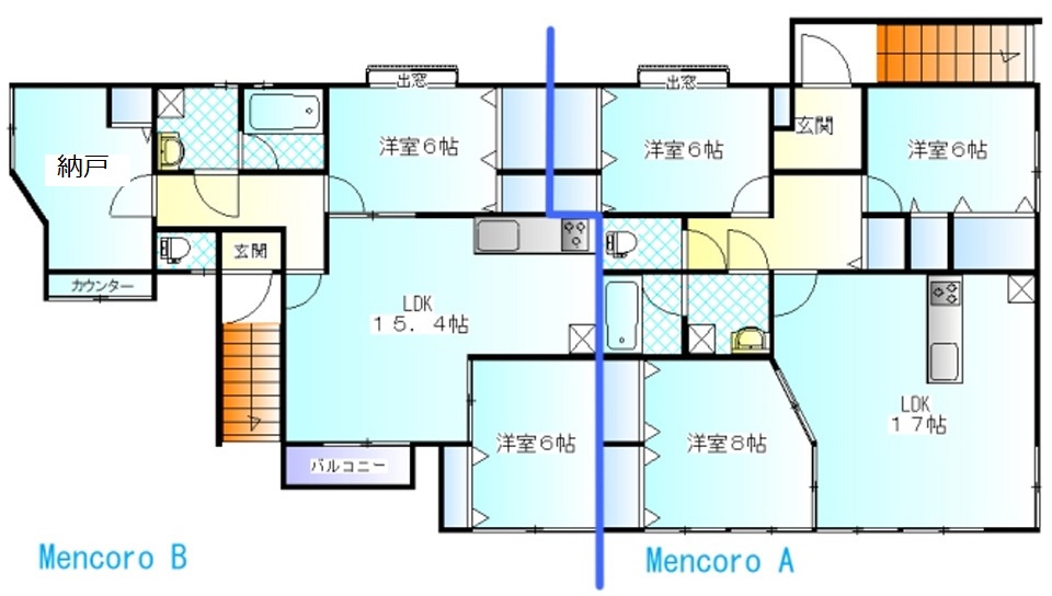 青い線から左がMencoro B、青い線から右がMencoro Aとなります
