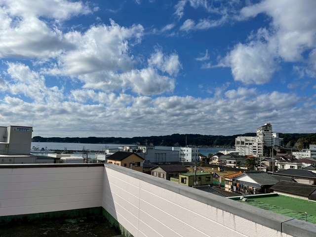 東京から特急わかしおで約90分、勝浦駅から徒歩9分、勝浦朝市通りに面した好立地。屋上から海が見えます!