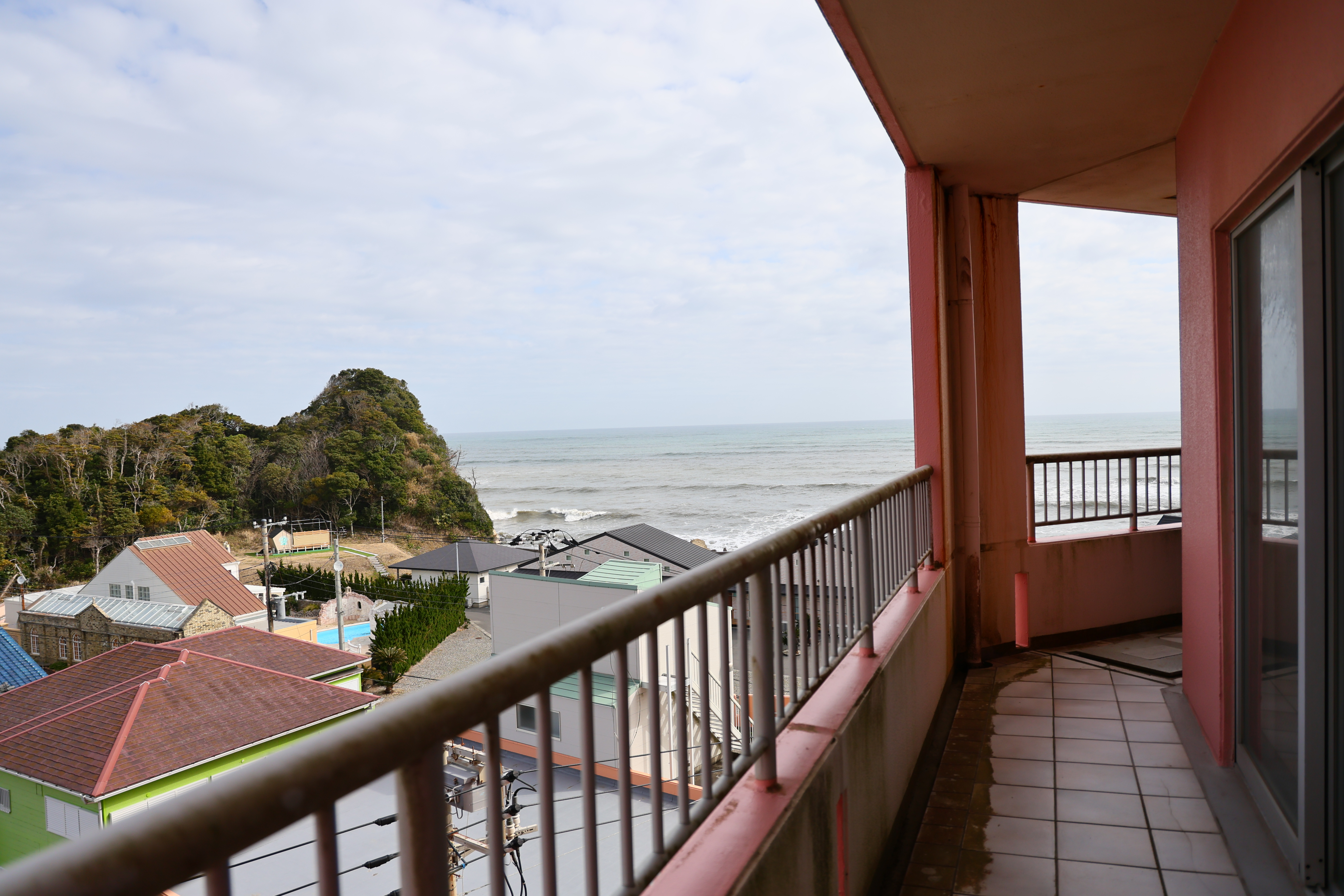 いすみ市の海辺に建つピンクマンション、シーサイド・リゾート南房総貴賓館。216戸のうち同じタイプの部屋は10戸のみ。